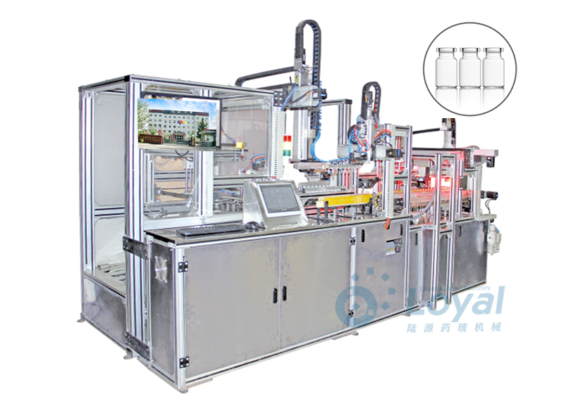 西林瓶生產(chǎn)線包括:自動上管、自動成型、經(jīng)機械手轉換至前端檢測線(也叫生產(chǎn)管控)、檢測線檢測的項目:1、瓶口內(nèi)外徑 2、瓶身長短 3、瓶身外徑 4、瓶口邊厚 5、瓶底內(nèi)凹尺寸檢測;經(jīng)檢測后的合格品再用機械手夾盤轉換至退火爐網(wǎng)帶上,經(jīng)高溫減除應力后再降溫,通過氣動吸盤將回火后的小瓶轉換至后端檢測線,后端檢測(也是重檢也叫終檢),經(jīng)后端拍照檢測項目